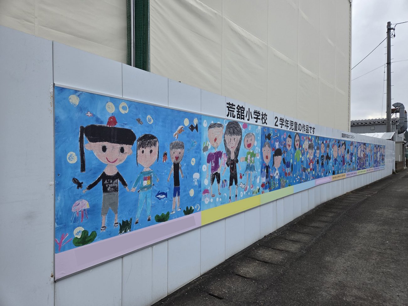 荒舘小学校の2年生の児童33名の作画を弊社の仮囲いに展示しました!